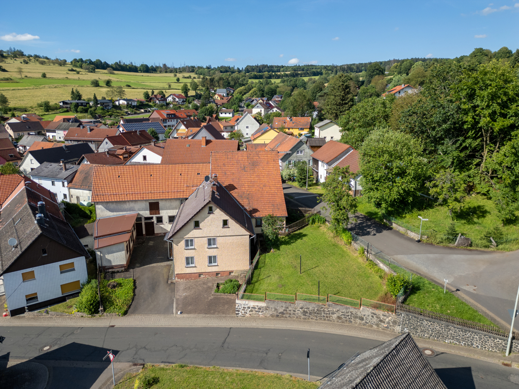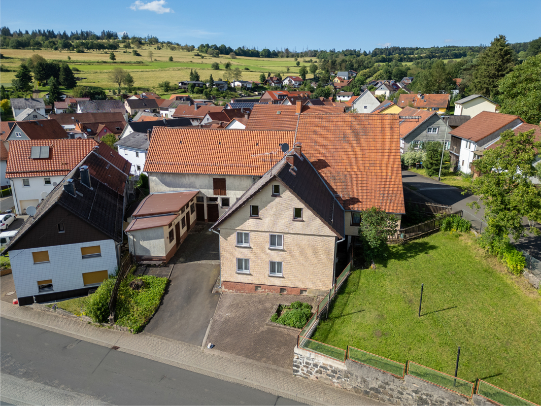 Dieser ehemalige, Bauernhof bestehend aus Wohnhaus, Scheune, Stallungen und Remise bietet enormes Potential. Es befindet sich im Naturpark Hoher Vogelsberg unterhalb des Hoherodskopf mitten im Feriengebiet und ist nur ca. eine Autostunde von der Mainmetropole Frankfurt entfernt.Bei dem zweigeschossigen Wohnhaus handelt es sich teilweise um einen Mauerwerks- und teilweise um einen Fachwerksbau. Die Fassade ist in für die Region typischer Weise verschindelt. Die nördliche Giebelwand grenzt an die Scheune. In westlicher Richtung befindet sich ein erdgeschossiger Anbau mit Schleppdach. Das Satteldach hat eine Tonpfanneneindeckung. Die Holzfenster sind isolierverglast. Die Heizung ist eine wassergeführte Ölzentralheizung mit Radiatoren. Es steht außerdem ein Kachel-/Holzscheitofen zur Verfügung. Das Wohnhaus ist teilunterkellert. 1980 und 1981 wurde das Gebäude umfassend saniert.